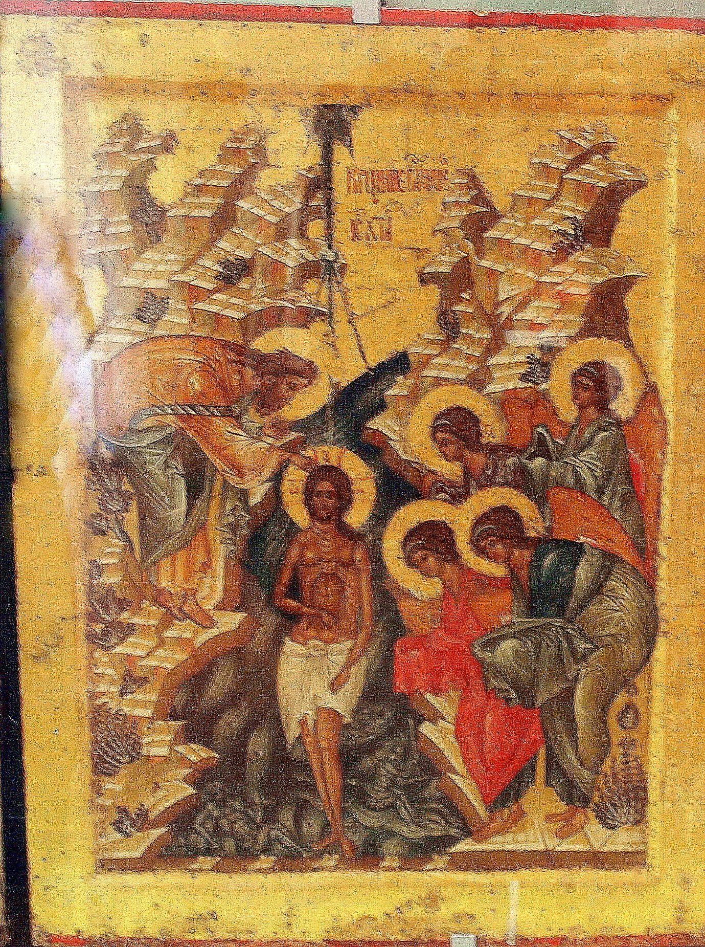 Together they wade out just a way from the shore. John speaking ritual words of repentance, and devotion to God takes Jesus under the water.